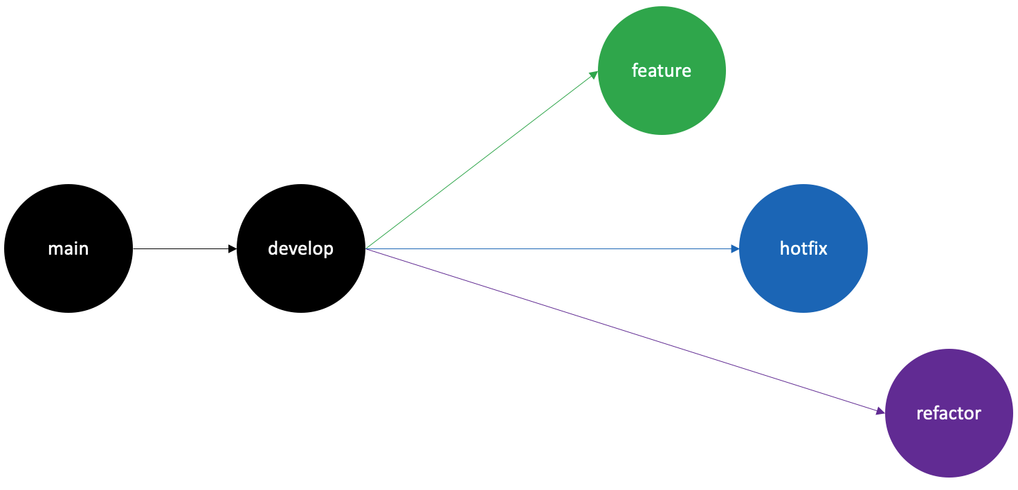 step.03 ~ step.05) 이후 develop 브랜치를 참조한 feature, hotfix, refactor 브랜치를 생성했다.
