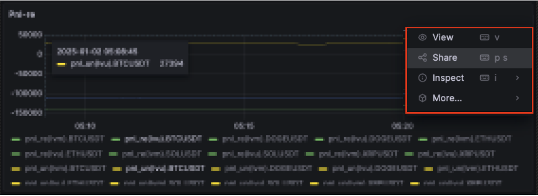 - 대시보드 그래프 하나를 선택해서 오른쪽 상단의 Share 버튼을 클릭한다.