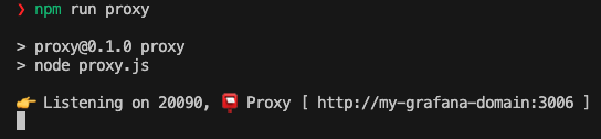 console.log("👉 Listening on 20090, 📮 Proxy [ http://my-grafana-domain:3006 ]");